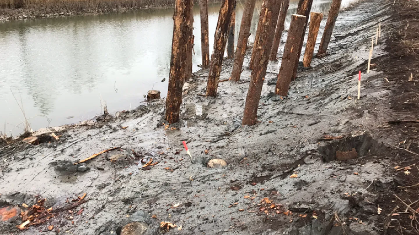 På norra sidan av kanalen vid Norsholm genomförs arbeten med att bygga en ny kanalbank som inte erroderar ned i kanalfåran och att återställa kanalprofilen även på den här sidan. När de blir klara innebär det att hela sträckan Norsholm – Hulta är färdigrenoverad.